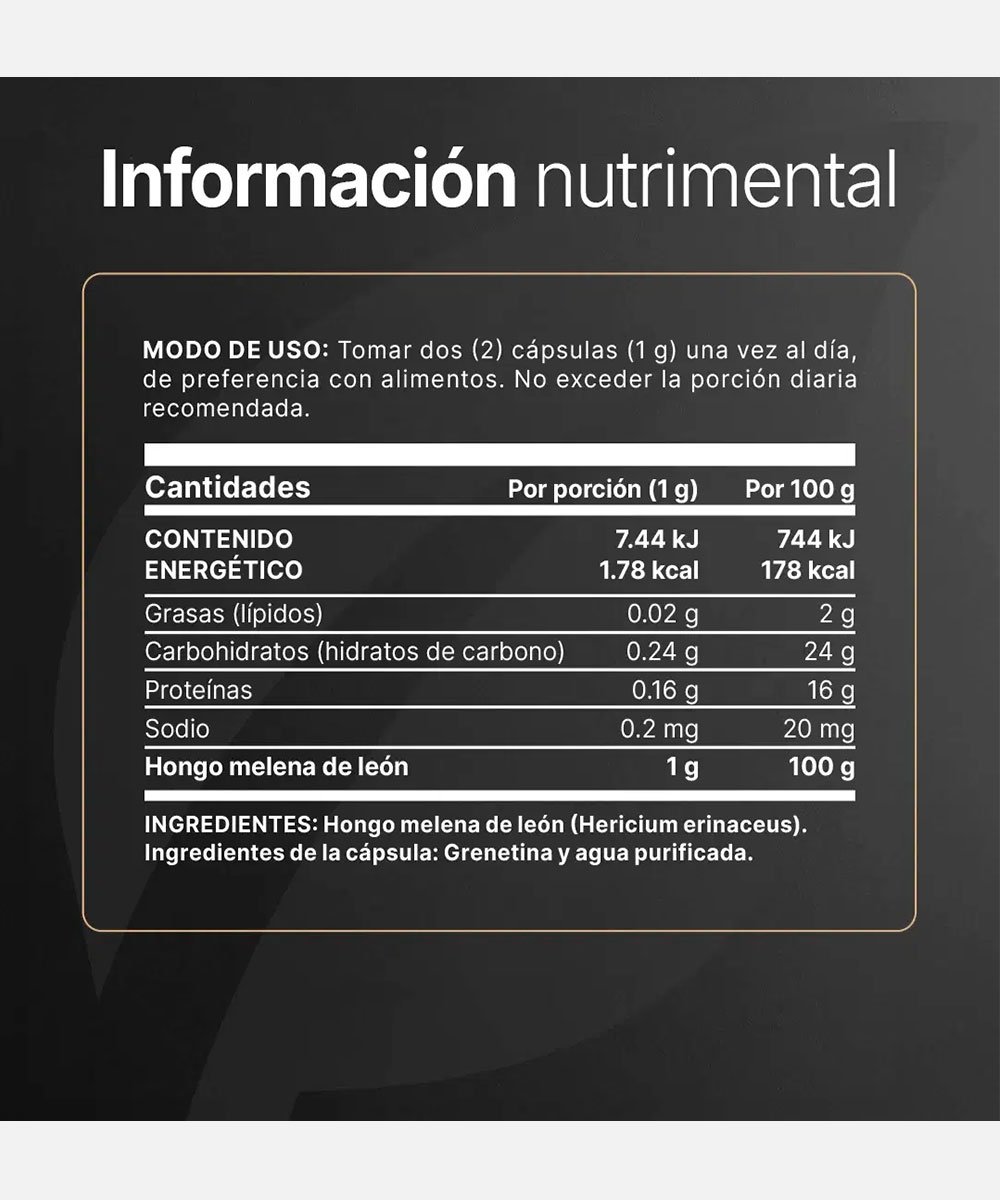 Sabor: HONGO MELENA DE LEON | 180 CÁPSULAS | 90 SERVICIOS